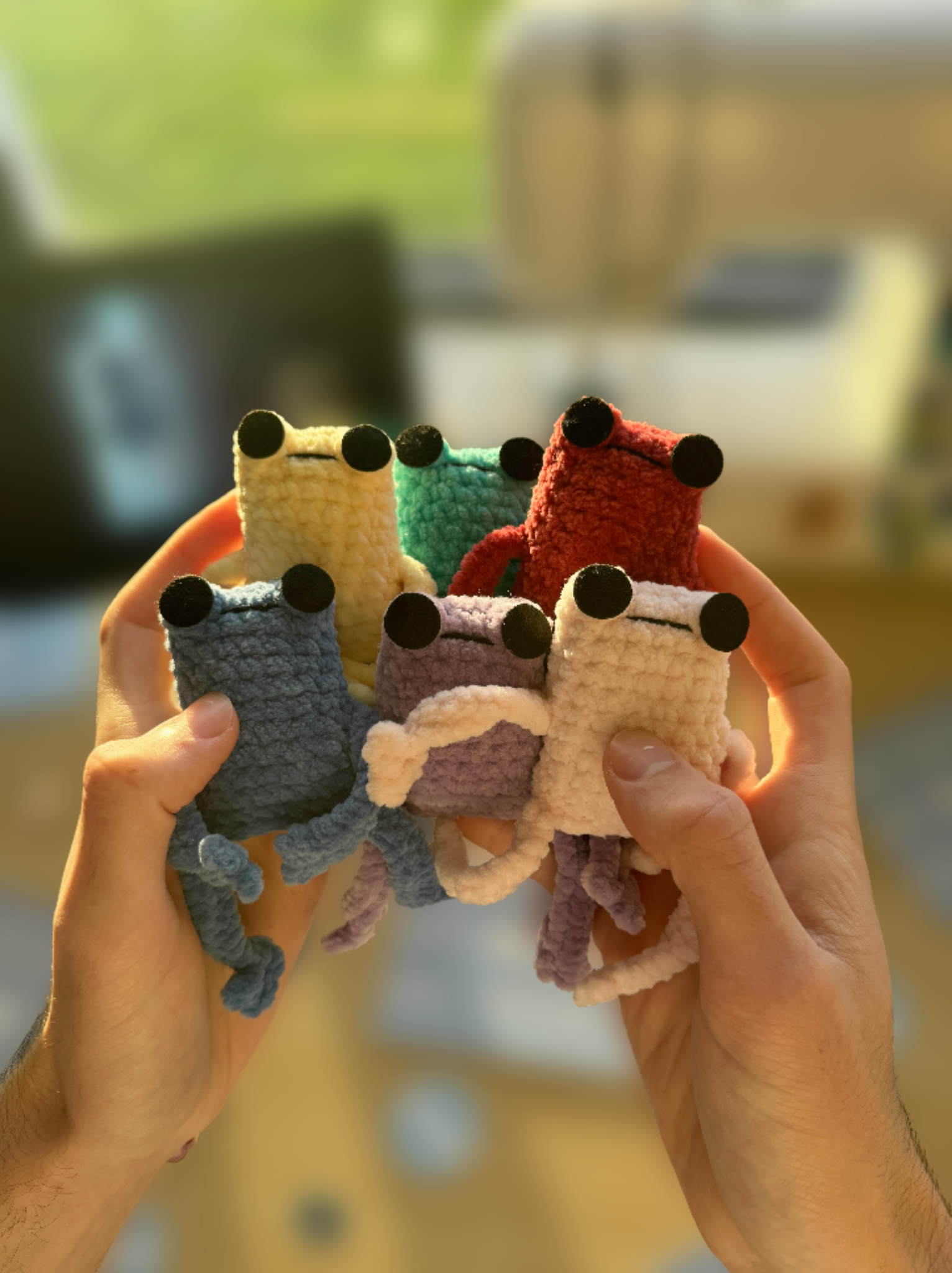 These are cute carefully crafted leggy frogs. Each leggy frog is handcrafted in Wicklow, Ireland by me, a 16 year old teen entrepreneur. Each plushie is made with high quality polyester yarn which is soft to touch. You can choose from 6 different colours, green, yellow, blue, pink, red and purple.