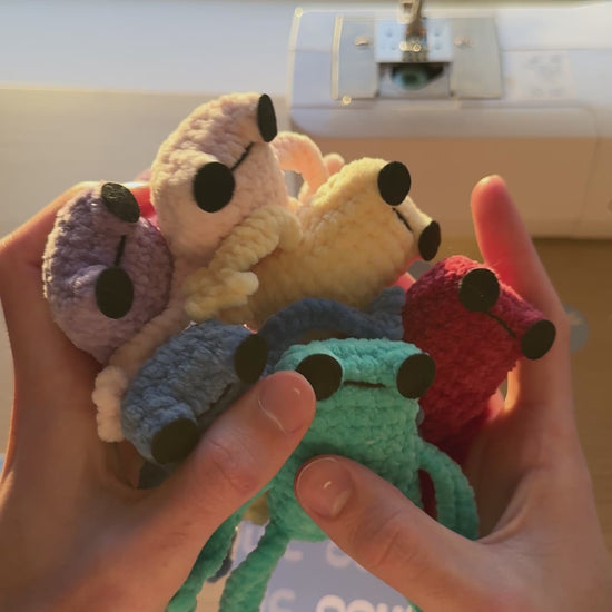 These are cute carefully crafted leggy frogs. Each leggy frog is handcrafted in Wicklow, Ireland by me, a 17 year old teen entrepreneur. Each plushie is made with high quality polyester yarn which is soft to touch. You can choose from 6 different colours, green, yellow, blue, pink, red and purple.