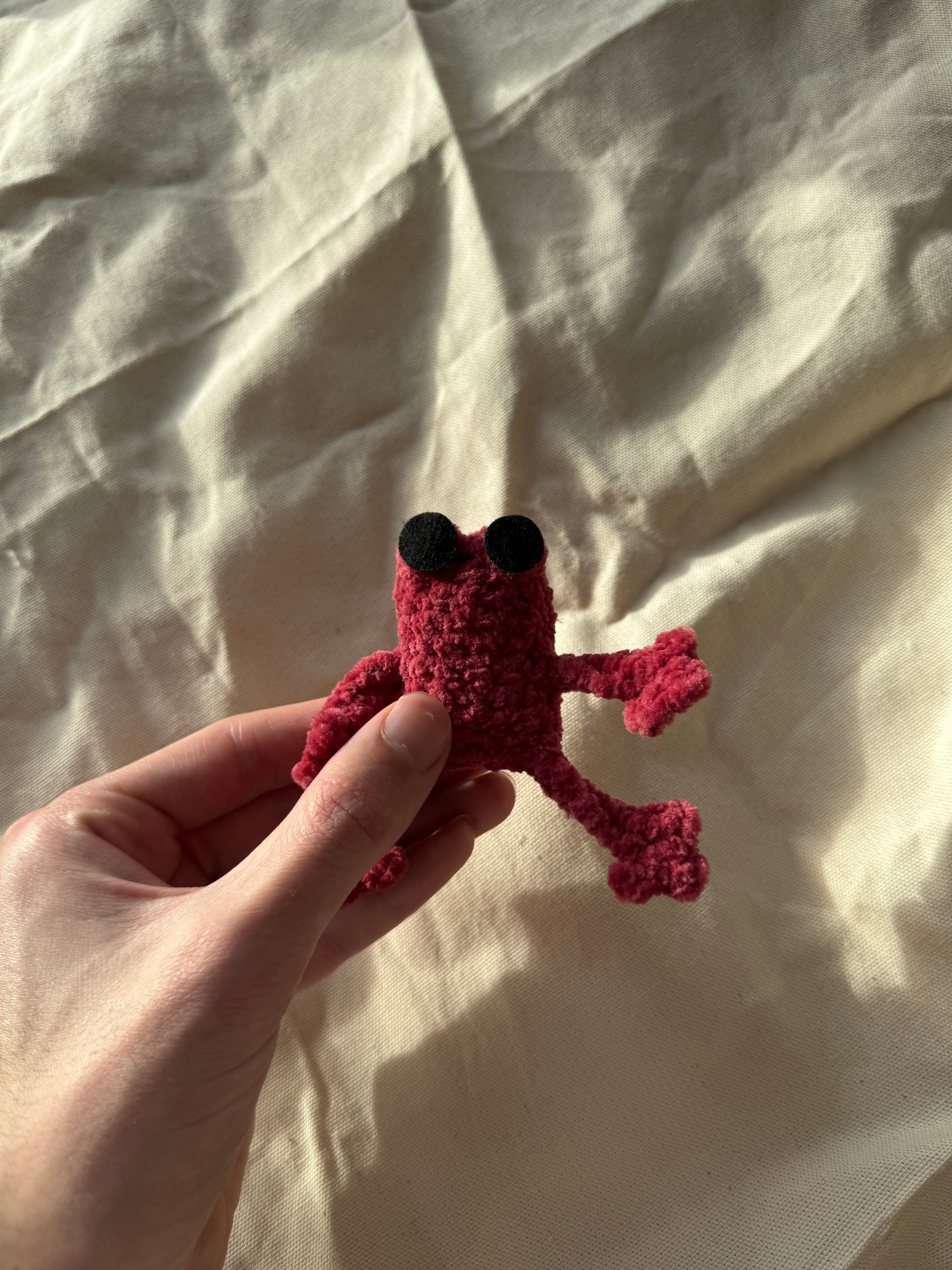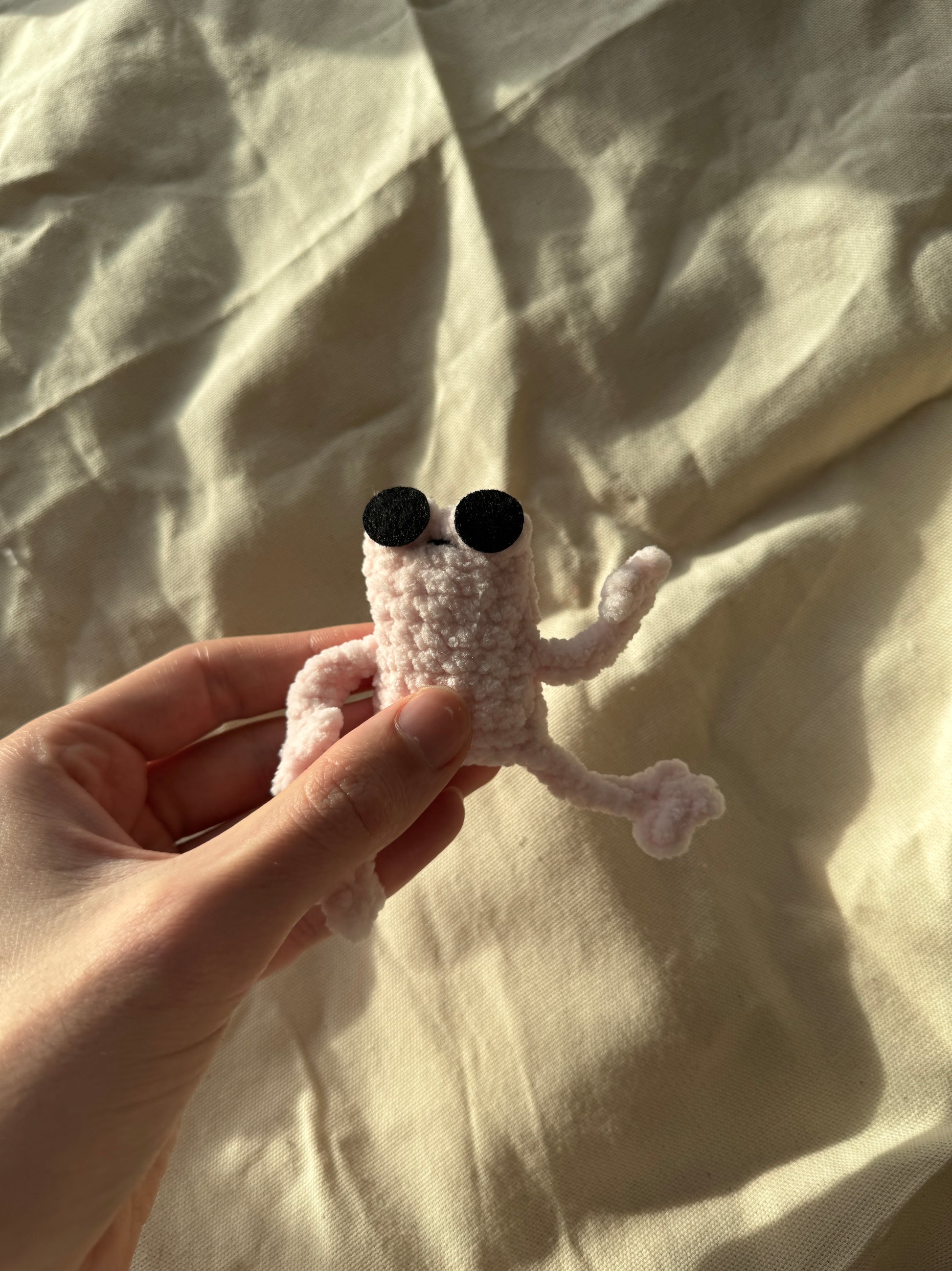 Handmade mini leggy frog plushie