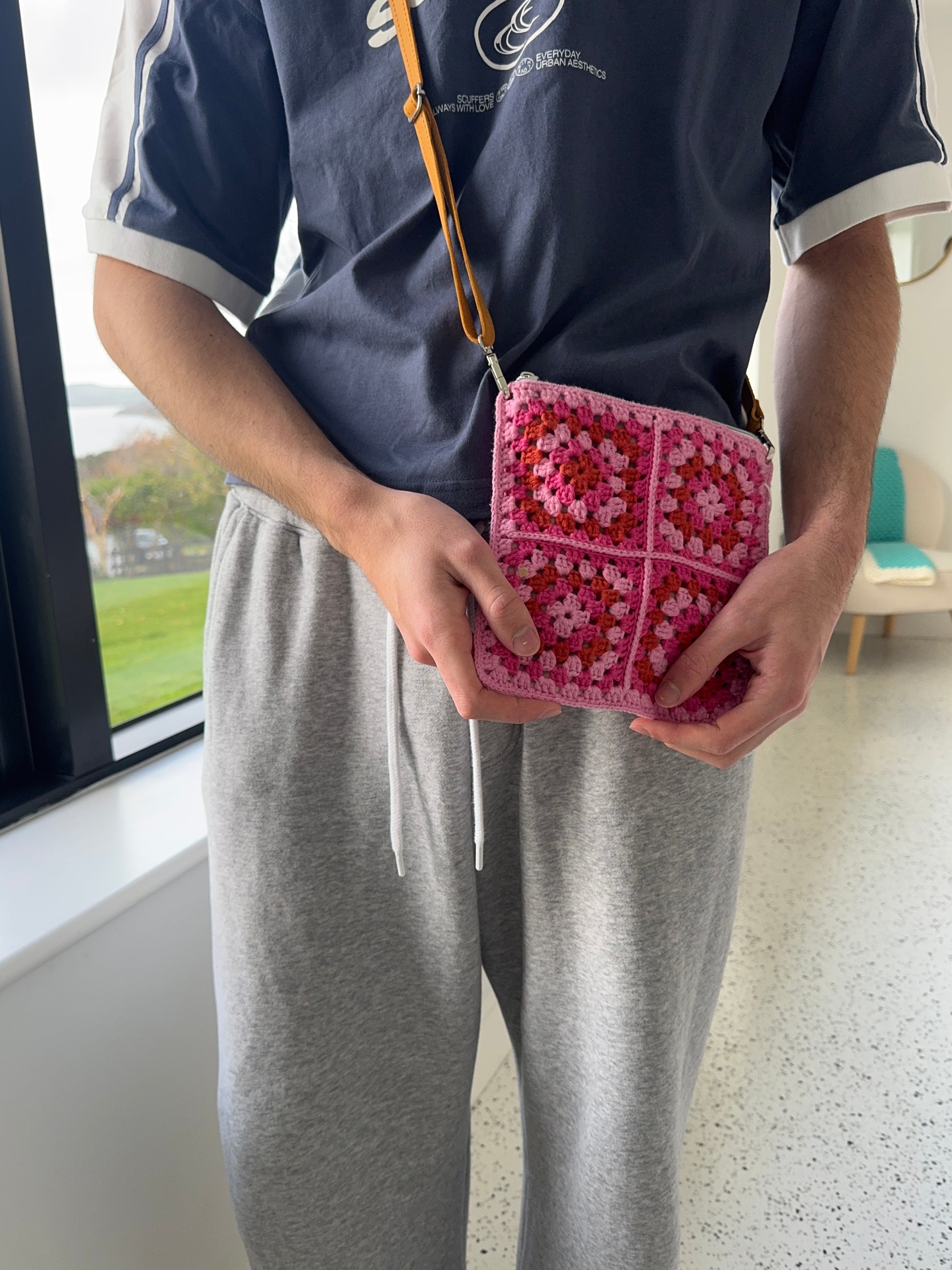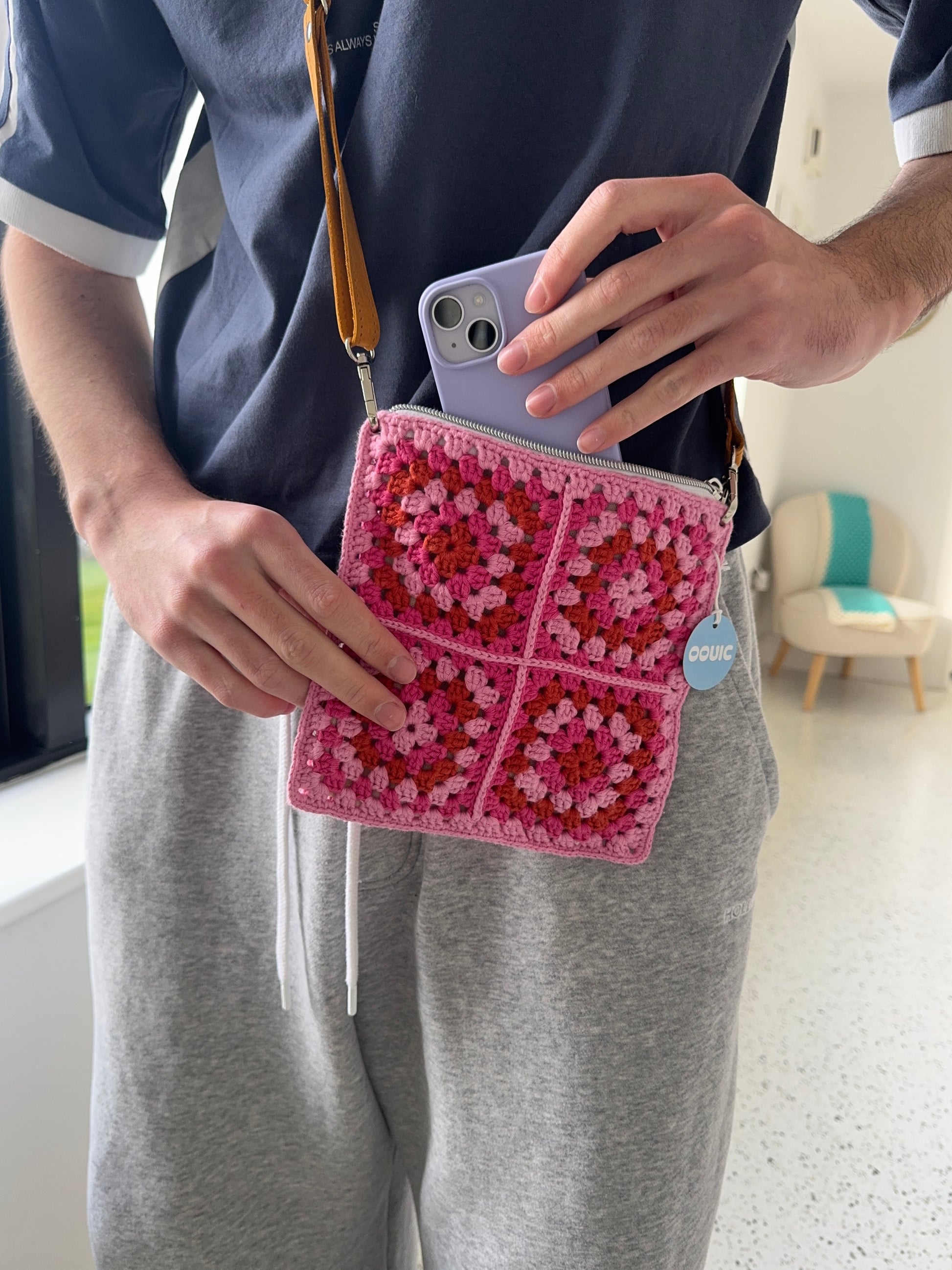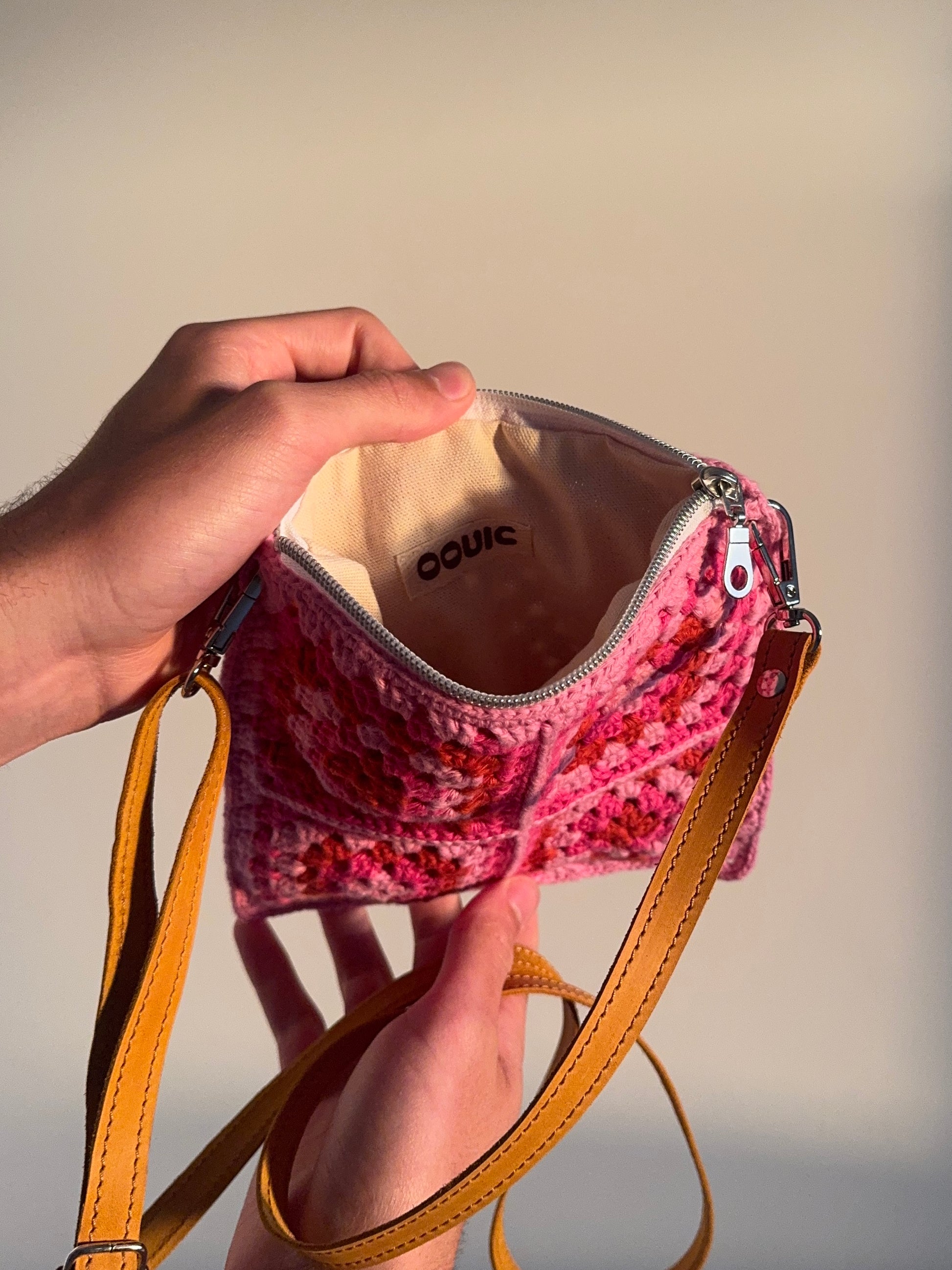 This is a luxurious handmade crochet bag. Each bag is made from premium 100% cotton yarn. The bags come with a luxurious cotton lining and have a silver zipper. Each bag has a bespoke detachable adjustable genuine leather strap handmade by a fellow small business in Ukraine. These bags are designed to last and are made with the highest quality materials to ensure the longevity of the bag.